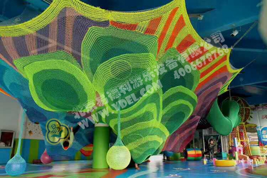巨大的異形彩虹繩網(wǎng),懸在空中占據(jù)空中大部空間,區(qū)別于彩虹樹設(shè)計(jì)直上直下,而是猶如一個(gè)大溶洞彩色熔....