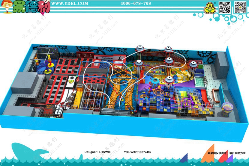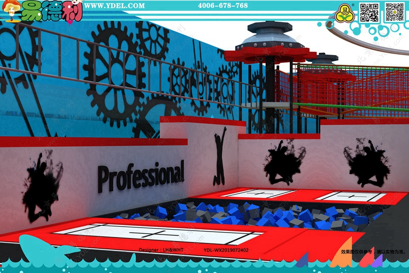 室內(nèi)蹦床公園可為不同年齡段的人群提供蹦床健身功能,設(shè)備安全系數(shù)高、可玩性比較強(qiáng)。