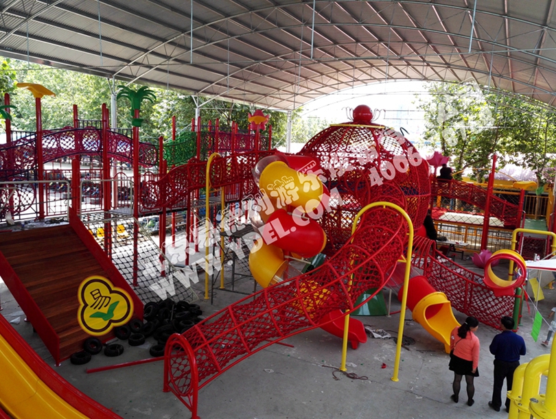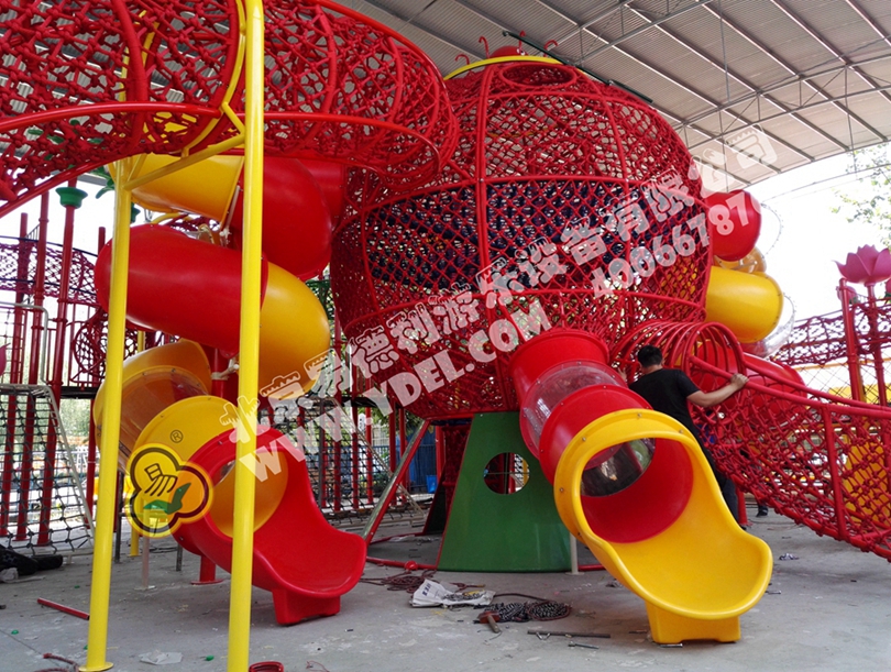 大型的造型攀爬網(wǎng)龍,采用全手工編織網(wǎng)繩打造,以章魚形象為主體,結(jié)合攀爬、翻越、滑梯等功能,不僅造型讓人眼前一亮,整體獨(dú)具特色,功能兼具冒險(xiǎn)和挑戰(zhàn)性,讓孩子得到充分鍛煉。