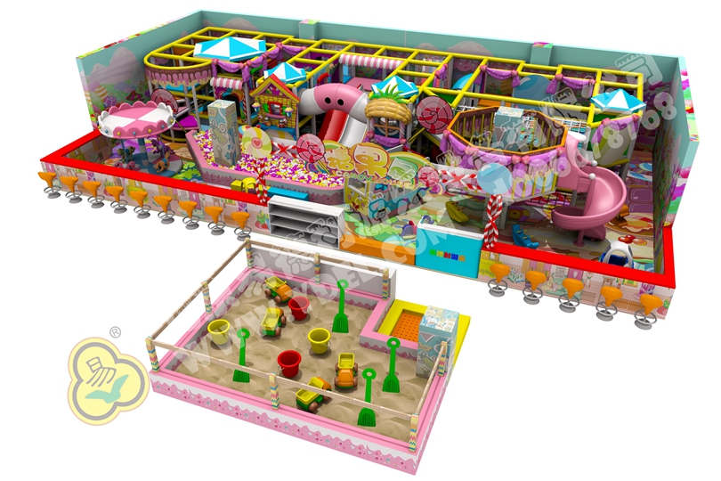 糖果屋,甜甜的,美美的。孩子們,無論是男孩還是女孩都喜歡甜甜的糖果,誘人的外觀裝飾設(shè)計(jì),讓人看了不禁想要親近,進(jìn)入玩耍。麻雀雖小五臟俱全,小小面積旋轉(zhuǎn)木馬,海洋球池,圍著柱子的瞭望臺(tái)等等應(yīng)有盡有。