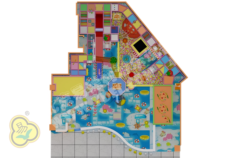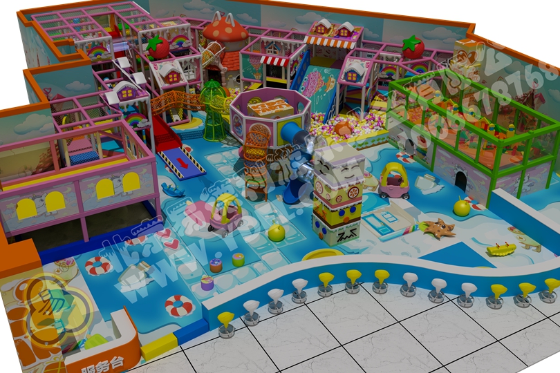 以粉色為主色的淘氣堡,看著就讓人感覺(jué)甜甜的、美美的。加入白色雪屋設(shè)計(jì),視覺(jué)上給人親近的好感,也讓寶寶想要進(jìn)去玩耍,就像冬天看見(jiàn)暖暖的糖果屋一樣誘人,吸引寶寶,想“咬”一口的沖動(dòng)。對(duì)可愛(ài)主題需求的客戶可以考慮粉色系&糖果主題淘氣堡。