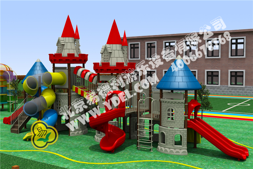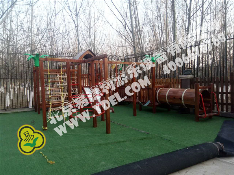 來廣營梧桐樹幼兒園戶外城堡大滑梯,一看就高大上,邊角的木質綜合拓展滑梯,鉆筒、蕩橋、軟梯和不銹鋼滑梯、秋千座椅,更有網繩能量塔搭配木質滑梯,全采用進口紅梨木,材質高功能強