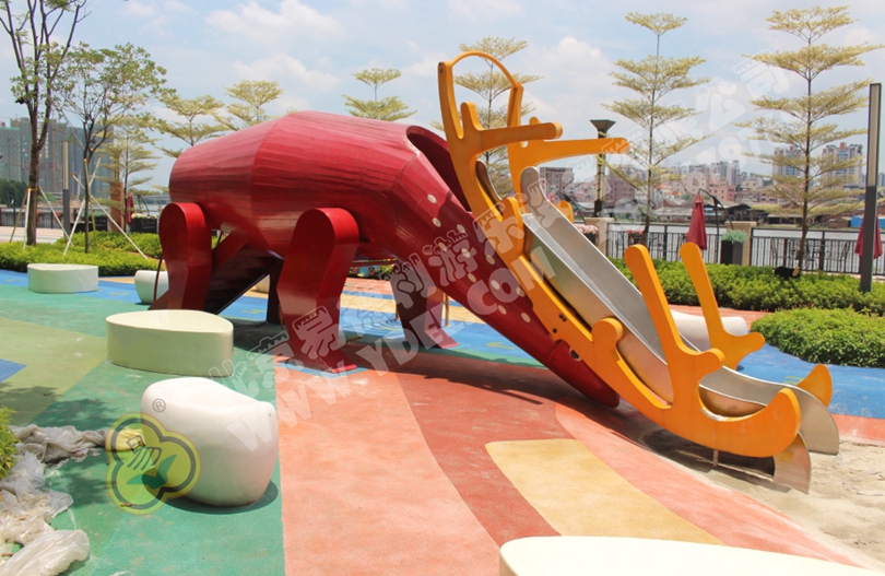 以鹿為造型的滑梯是孩子們的共同好友,沒(méi)什么能阻擋孩子與這樣一個(gè)不會(huì)說(shuō)話(huà)又令人親近的“大朋友”建立起獨(dú)特的友情。這個(gè)朋友不僅漂亮而且很有“肚量”,鉆進(jìn)鹿先生的肚子里,從它的犄角之間 滑落,這個(gè)感覺(jué)妙不可言。這只鹿的肚子里,藏著美好的童年孩子有著熱愛(ài)探索與冒險(xiǎn)的天性,“危 險(xiǎn)”是成長(zhǎng)中的有益刺激,“害怕”中蘊(yùn)藏著最豐富的樂(lè)趣,巨鹿滑梯的長(zhǎng)度經(jīng)過(guò)現(xiàn)場(chǎng)實(shí)地?cái)?shù)次調(diào)節(jié), 使孩子們?cè)诨兄畜w驗(yàn)刺激,安全落地。