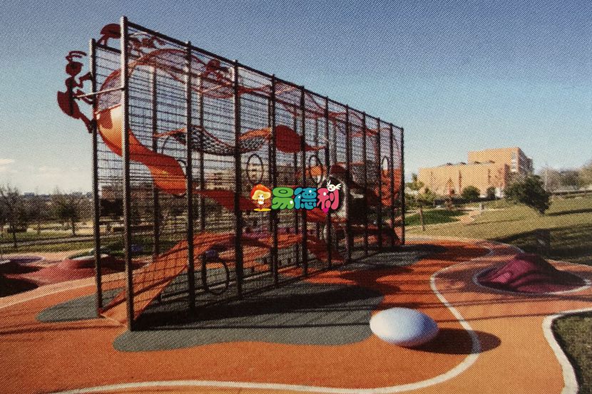 游樂場適合不同年齡段兒童的游樂設(shè)施,如秋千、拉鎖、滑道、隧道、堡壘和攀爬設(shè)施。