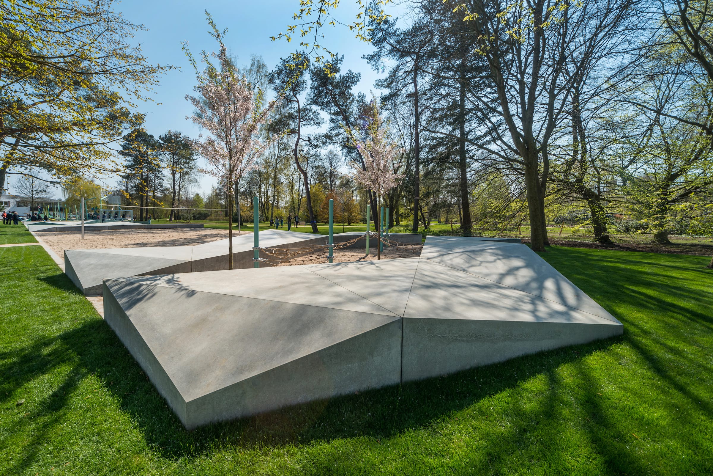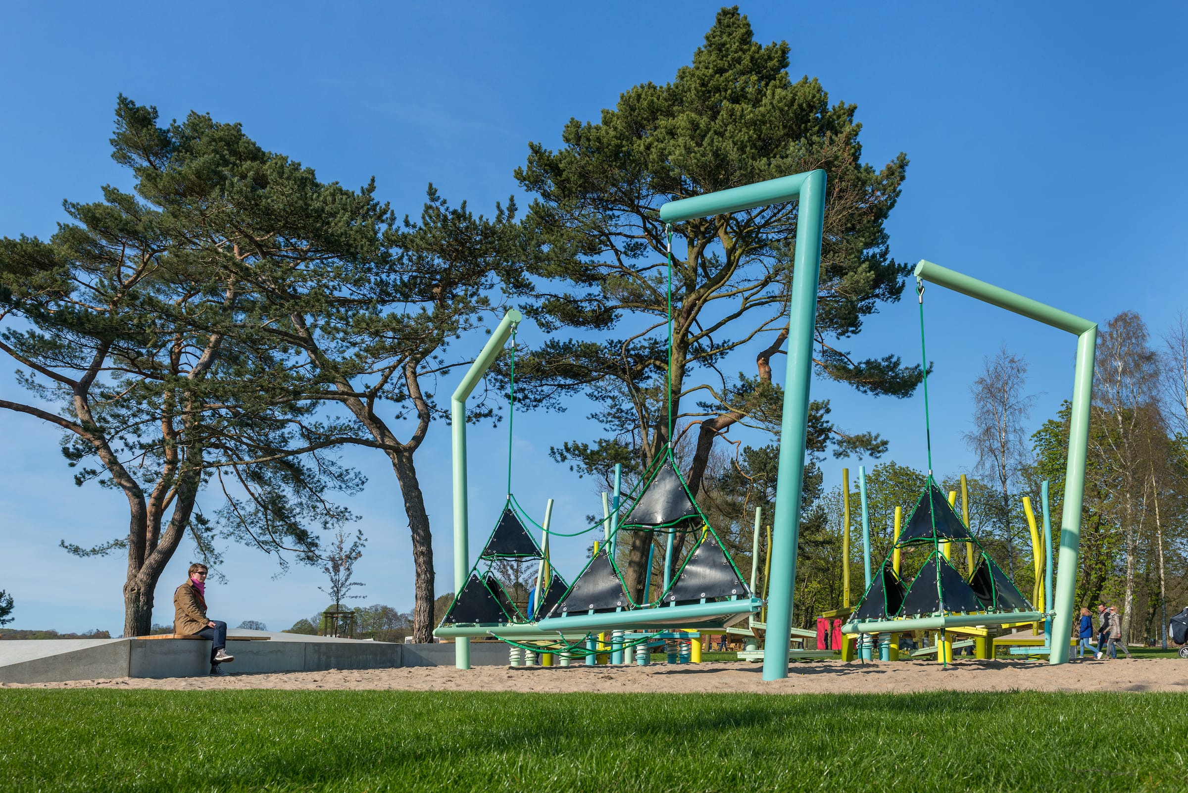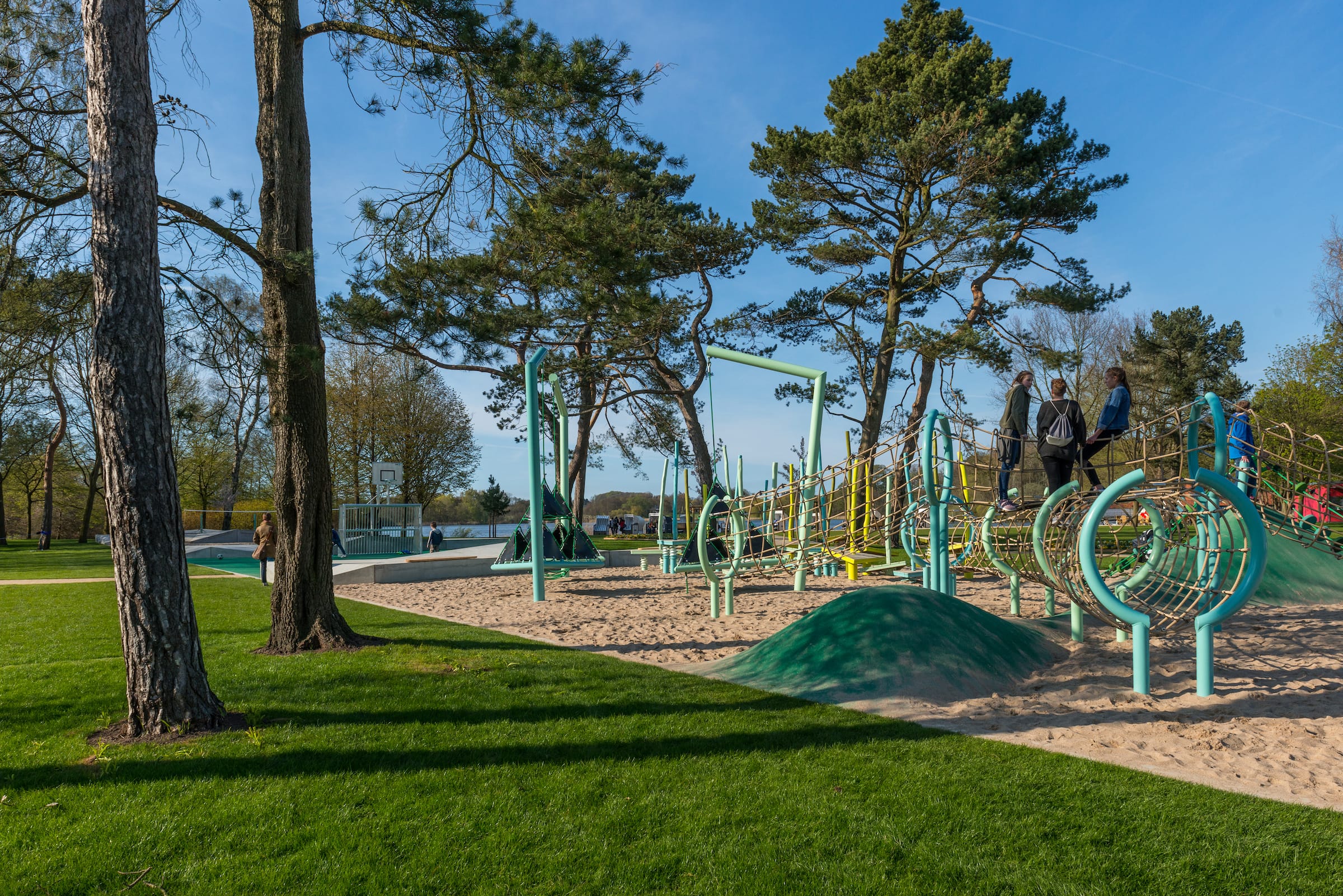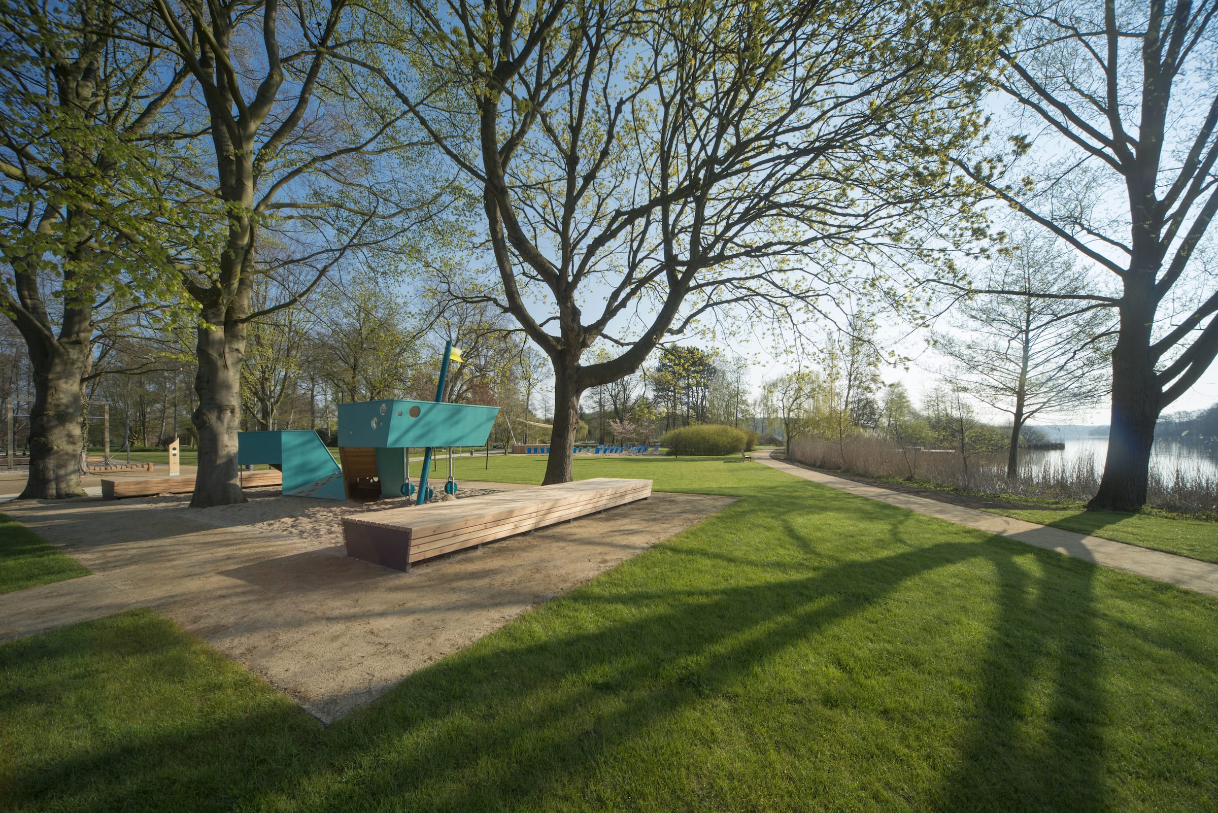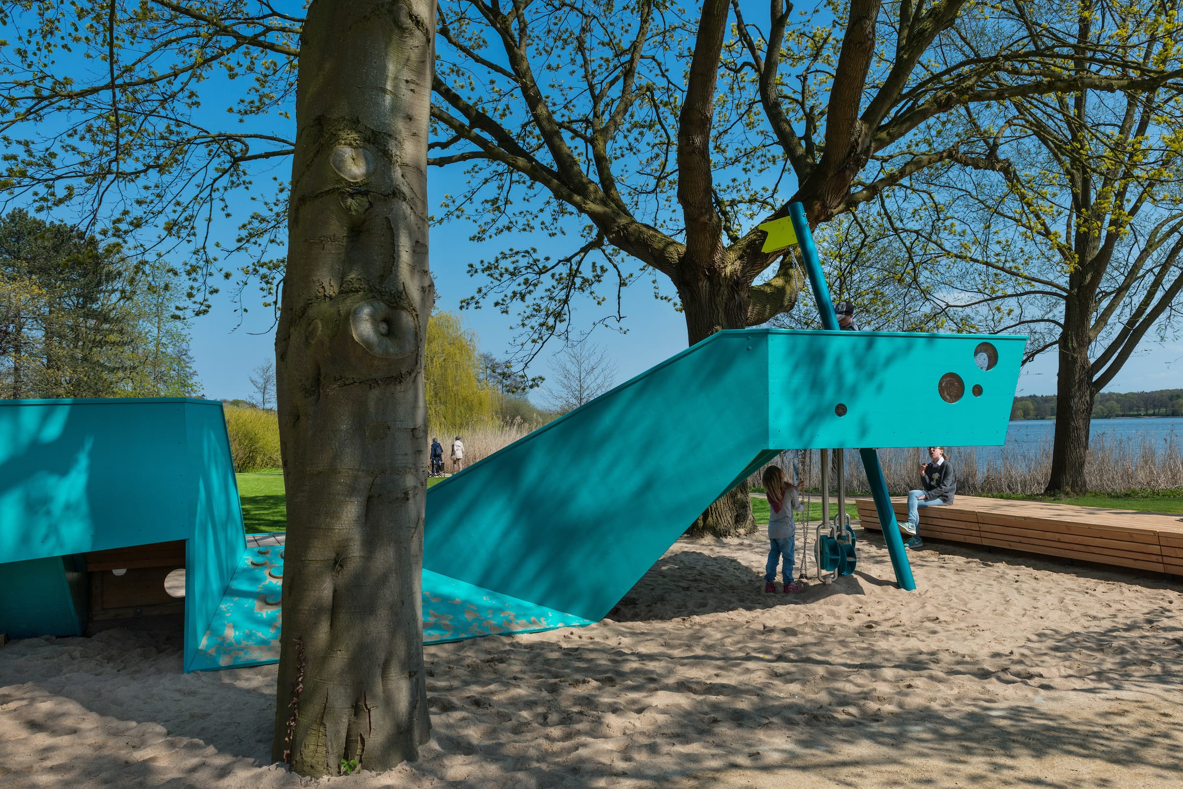作為與歷史悠久的Schlossgarten公園形成對(duì)比的一個(gè)景觀,Seepark已發(fā)展成為一個(gè)娛樂性的景觀,為家庭、兒童和青少年提供了各種各樣的活動(dòng)空間,緩解了以前對(duì)地標(biāo)保護(hù)花園的過度使用。除了開闊的放松區(qū)域,它還提供了許多戶外活動(dòng)機(jī)會(huì),為兒童和青少年舉辦講習(xí)班,設(shè)計(jì)他們自己的游戲和運(yùn)動(dòng)場(chǎng)地。沙灘上有日光浴區(qū),也有沙灘排球和街球的場(chǎng)地。“湖泊”和“森林”的主題是在一個(gè)多層面的、挑戰(zhàn)性的面向兒童的游戲世界中體現(xiàn)的,這為他們的感官而打造:攀爬可以測(cè)試他們的平衡和靈活性;網(wǎng)狀隧道像魚網(wǎng)一樣伸展,覆蓋在模型塑料表面;帶有擋泥板的松緊繩索也可以攀爬;移動(dòng)的柱子創(chuàng)造了一個(gè)“搖擺的森林”;樹屋正在建造中。整個(gè)公園都有野餐和燒烤的地方。