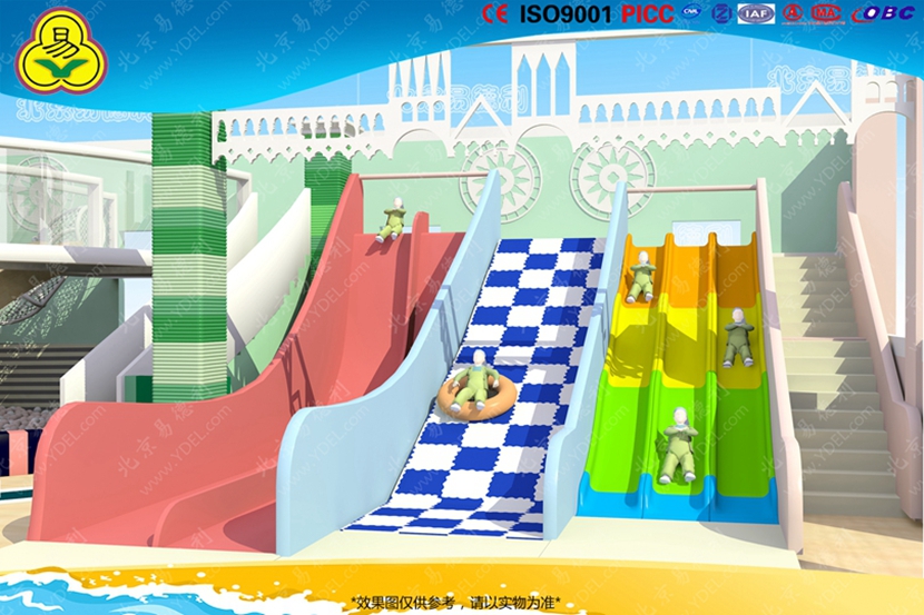 塑膠滑梯是兒童室內樂園的重要構成部分,一般位于整個兒童主題樂園的中心部位,與海洋球池形成最佳搭檔。在造型上以三部平行梯為主要展現(xiàn)形式。當然,也有單個的,連著積木池的螺旋滑滑梯。這種滑梯一般坡度較小,難度較低,比較適合于學齡前小朋友以及一些初學滑滑梯的小朋友玩。