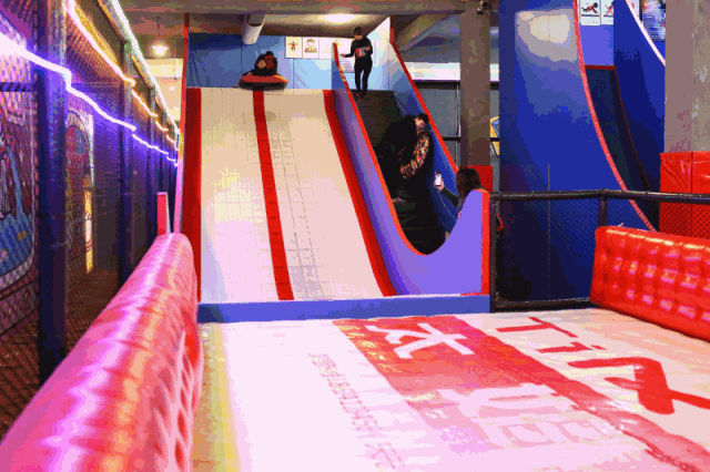 當(dāng)然,室內(nèi)的旱雪滑梯沒有那么多能力技術(shù)上的要求,只要你敢嘗試,就會(huì)享受飛一般的感覺,坐著的橡皮膠墊會(huì)沿著軌道飛出最后落到充氣氣墊之上,過程中享受旱雪滑梯帶來的沖刺感,期間總能聽到玩者的尖叫聲,成為蹦床樂園的一大亮點(diǎn),是目前抖音上最火熱的娛樂項(xiàng)目之一——網(wǎng)紅尖叫滑梯